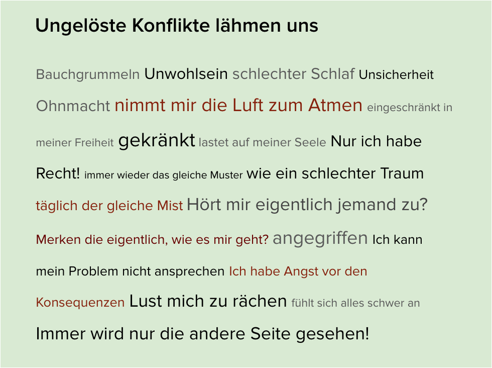 Ich unterstütze Sie dabei, Konflikte nicht nur zu lösen, sondern als Chance für Entwicklung, Entlastung und nachhaltigen Erfolg zu nutzen.